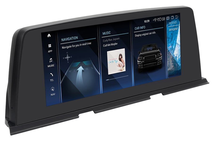 Skjermen støtter alle BMW originale funksjoner, inkludert rattknapper, bilinformasjon som vist på den eksisterende originalskjermen, t,eks. I-Drive-kontroll, original ryggekamera (hvis tilgjengelig), parkeringssensorer, hastighet, eksisterende radio- og CD-funksjonen holder som det er, innstillinger osv. Skjermen er kompatibel med lydsystemet enten det er fiber-optisk eller vanlig lydanlegg.